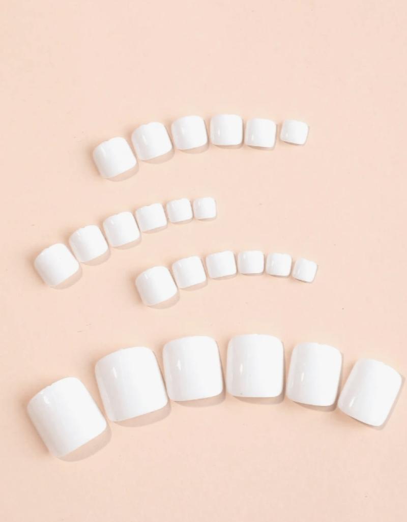 24 قطعة أبيض مربع أظافر وهمية اضغط على أظافر اصبع القدم قصيرة الاكريليك كاذبة أصابع القدم الأظافر لطيف الاصطناعي كامل غطاء أظافر مع تكلفة الأشعة فوق البنفسجية للنساء والفتيات (1PC ملف و 1PC هلام الغراء) مسمار اللوازم