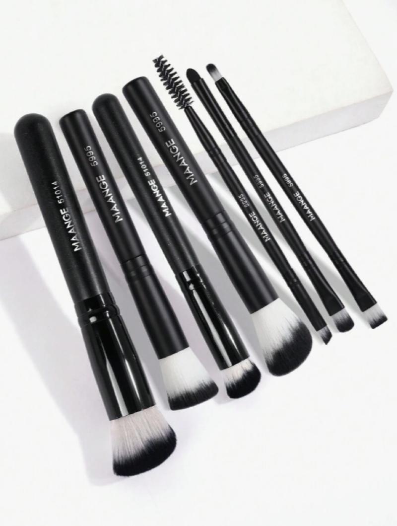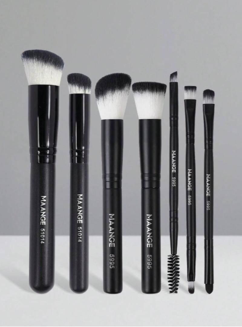 MAANGE MAANGE 7 قطع فرشاة ماكياج مجموعة مع فرشاة أحمر الخدود فرشاة الأساس فرشاة ظلال العيون فرشاة رمش فرشاة الحاجب فرشاة الشفاه فرشاة كفاف فرشاة مسحوق فضفاضة فرشاة المخفي أدوات ماكياج
