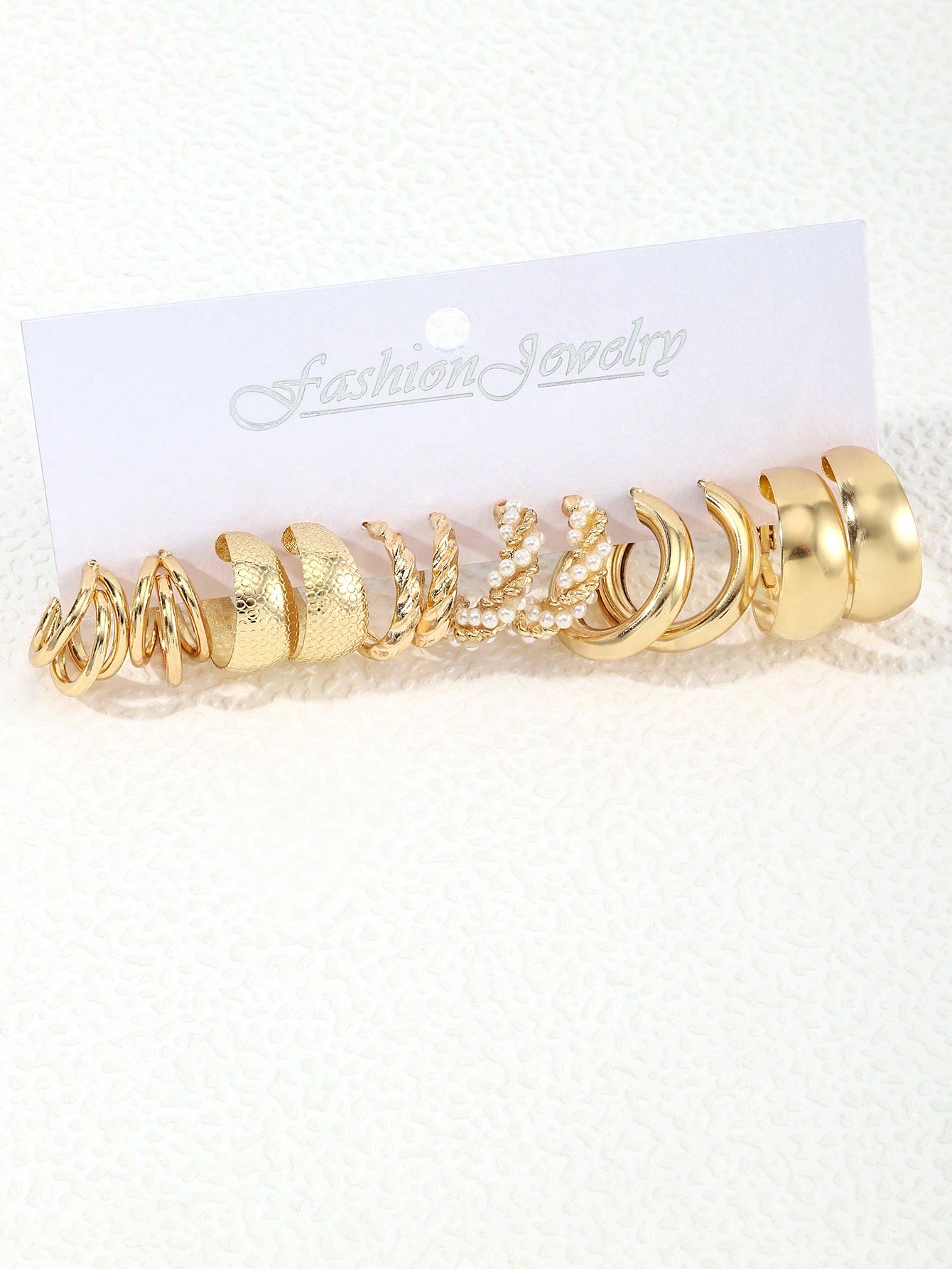12 قطعة / مجموعة أقراط برغي هوب الإبداعية للنساء ، سبيكة مع ديكور لؤلؤي صناعي ، مناسبة للارتداء اليومي والحفلات