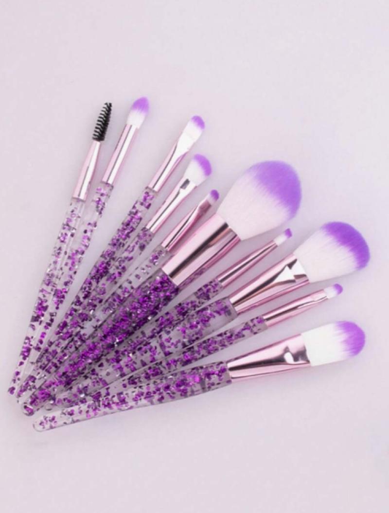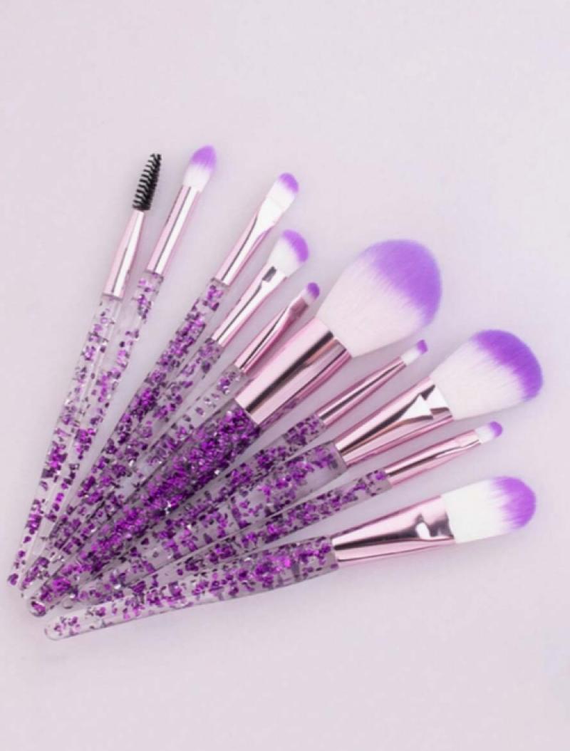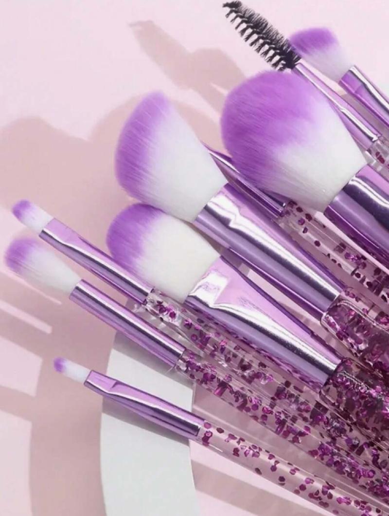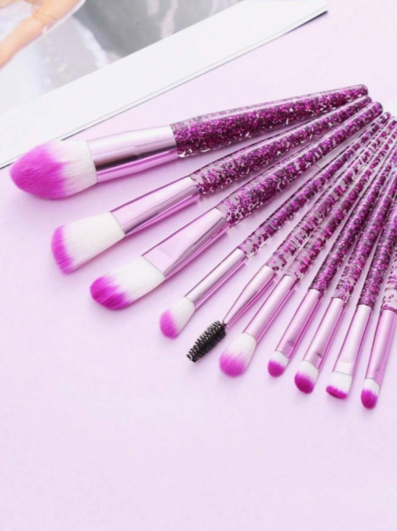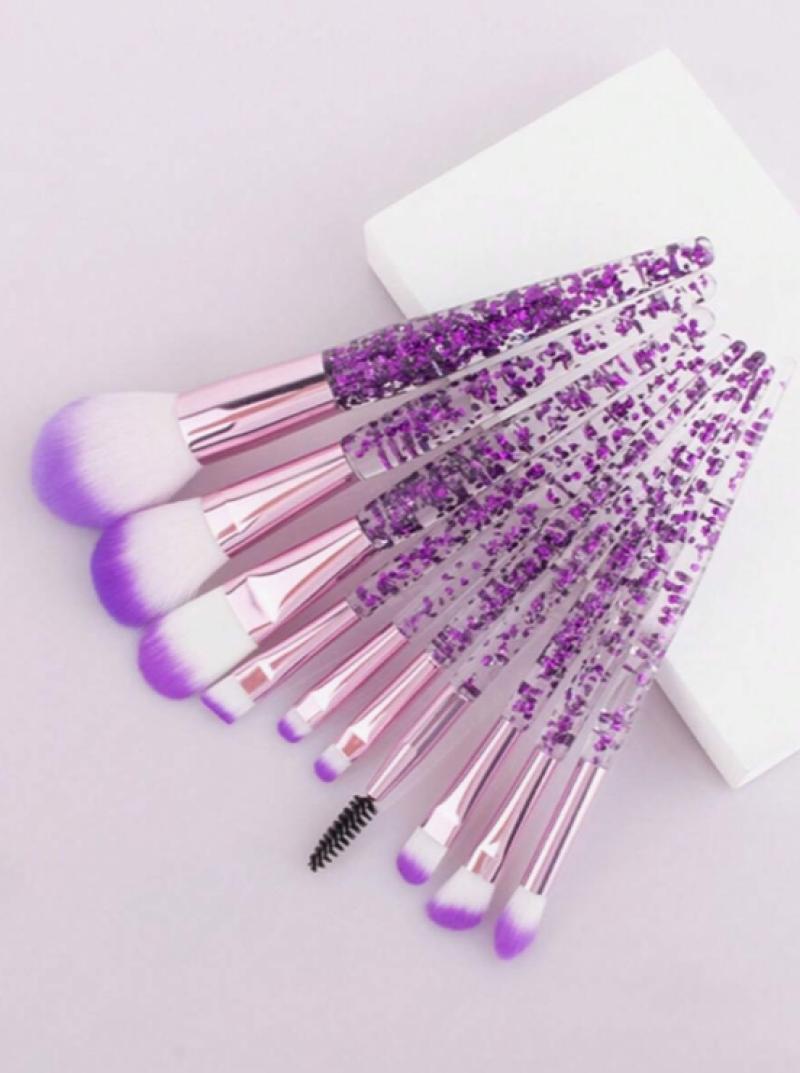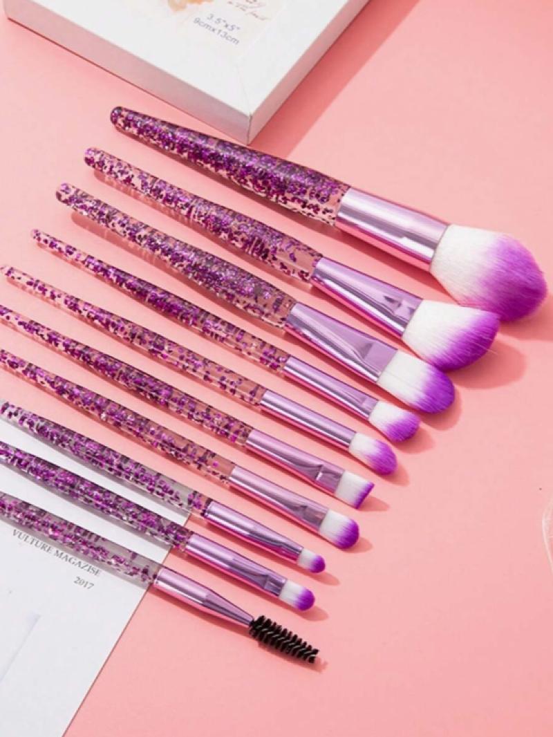 10قطع واضحة كريستال وتدفق الرمال ماكياج فرشاة مجموعة، بما في ذلك فرشاة عينيه، فرشاة أحمر الخدود، فرشاة مسحوق فضفاضة، .