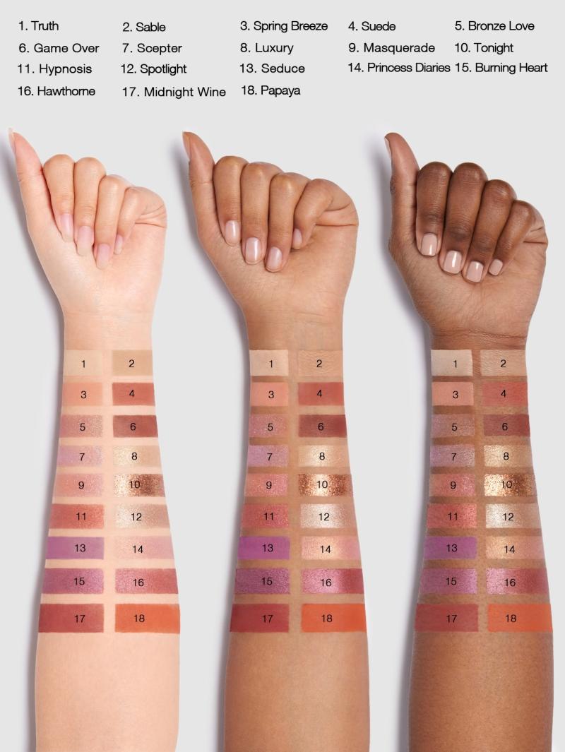 لوحة Glitz Wiz المستوحاة من الخيال! يضم 18 درجة لونية بلمسات نهائية متنوعة من الألوان غير اللامعة واللؤلؤية والترتر المتلألئة. تذكرنا الألوان الأحمر والأرجواني والوردي الناعمة بغروب الشمس السحري - وهي قابلة للتخصيص إلى ما لا نهاية لإنشاء مكياج يومي مثالي أو مظهر مثير للحفلات التي تبحث عنها.