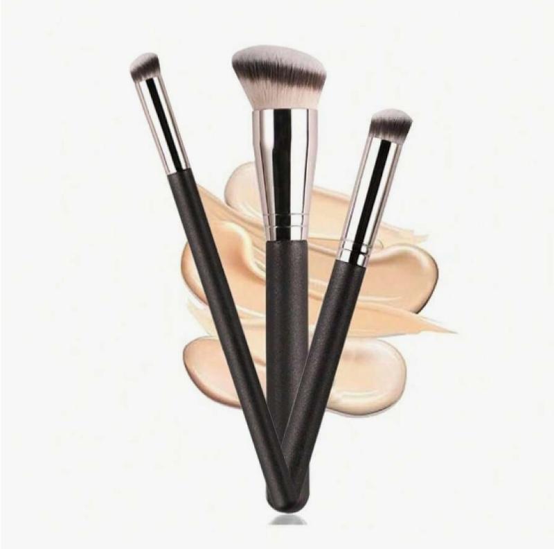 3 قطع اللؤلؤ المألوف التعامل مع لينة وكثيفة شعيرات المخفي فرشاة ، فرشاة المخفي وفرشاة الأنف كفاف لإعداد خلط المخفي ومسحوق كريم السائل ماكياج ، للجنسين