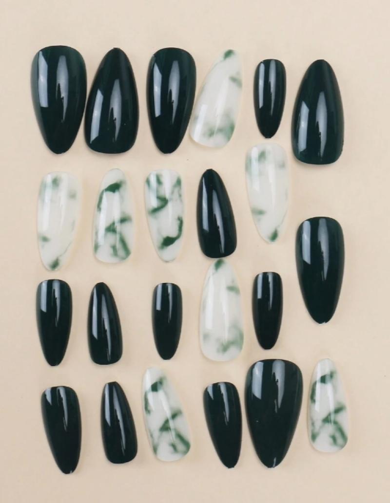 باستخدام مجموعة كاملة من 24 مسمارا متوسط الطول على شكل دمعة قابلة لإعادة الاستخدام بألوان متدرجة خضراء وتصميم على الطراز الأوروبي ، جنبا إلى جنب مع 1 قطعة من غراء الهلام و 1 قطعة من مبرد الأظافر. مثالي للحفلات أو المناسبات أو الارتداء اليومي.