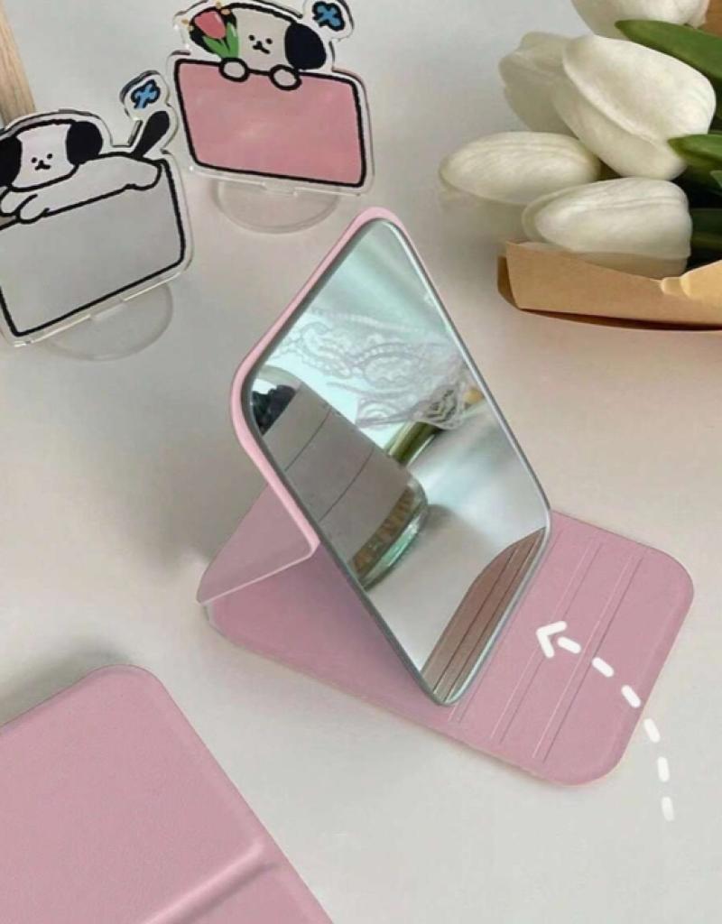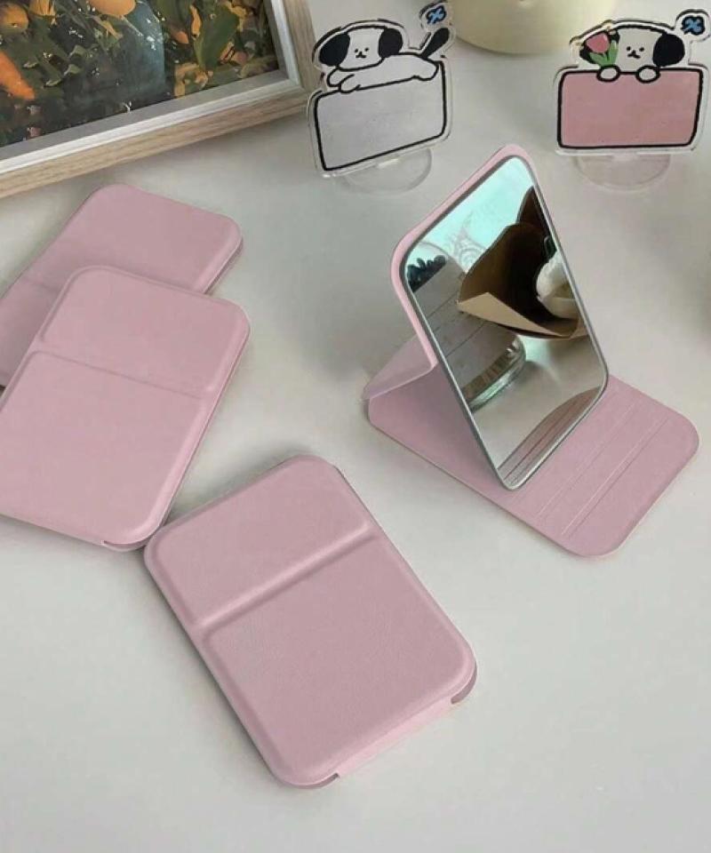 1 قطعة مرآة ماكياج المحمولة ، مرآة صغيرة من جلد بو ، قابلة للطي ، مرآة السفر ، مناسبة لتقديم الهدايا ، أساسيات السفر ، أساسيات المكياج ، سهلة التخزين عيد الميلاد لتقديم هدايا العيد