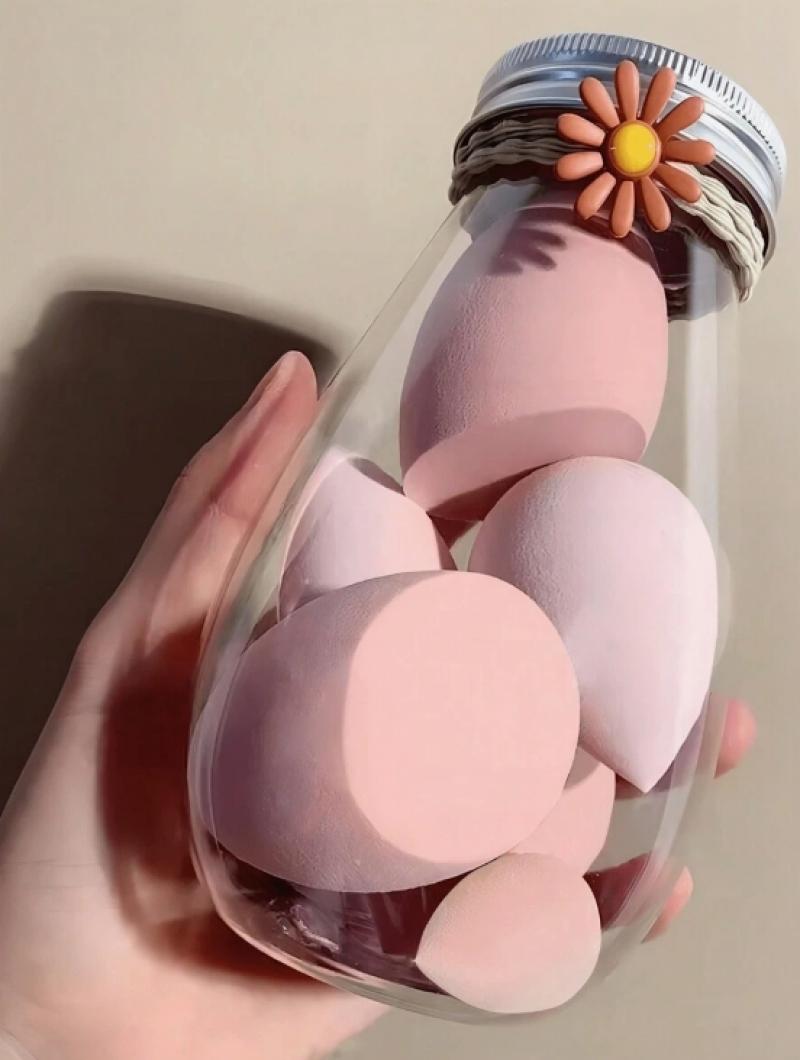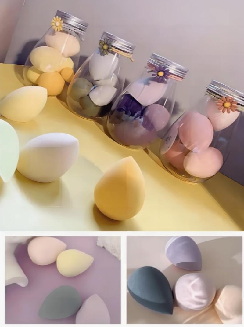 1 زجاجة تحتوي على 6 قطع ماء البولي يوريثين مسحوق نفخة مجموعة للماكياج ، مزدوجة الاستخدام الرطب والجاف الإسفنج الجمعة السوداء