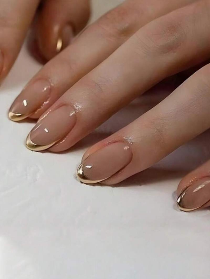 بساطتها نمط 24 قطعة قصيرة دائرية الأظافر الاصطناعية الاصطناعية مع حافة الذهب ، النمط الفرنسي الصحافة على مجموعة الأظافر مناسبة للارتداء اليومي ، التي يرجع تاريخها ، شاي بعد الظهر والخروج