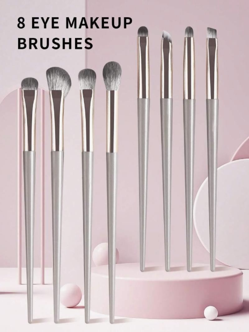 8 قطع المحمولة متعددة الوظائف ماكياج فرشاة مجموعة للوجه والعينين، ويشمل فرشاة مزج، فرشاة الحاجب، فرشاة التفاصيل