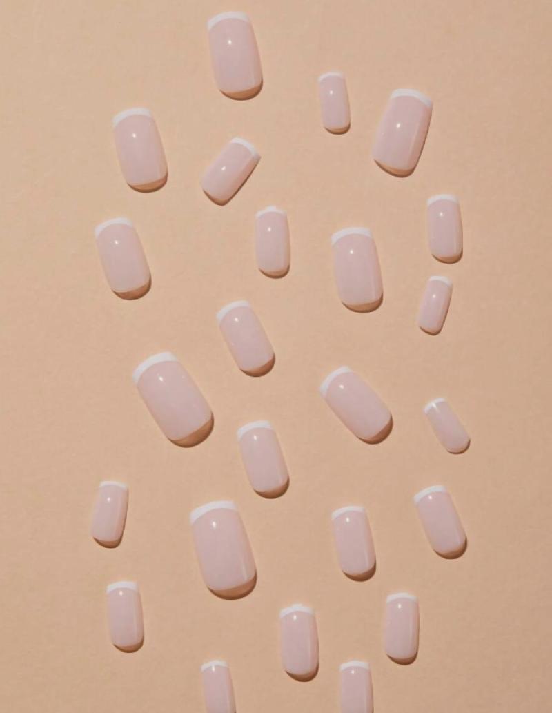 قم بترقية مظهرك مع 24 قطعة قصيرة مربعة على الطراز الفرنسي غطاء كامل مجموعة أظافر مزيفة اضغط على مستلزمات الأظافر
