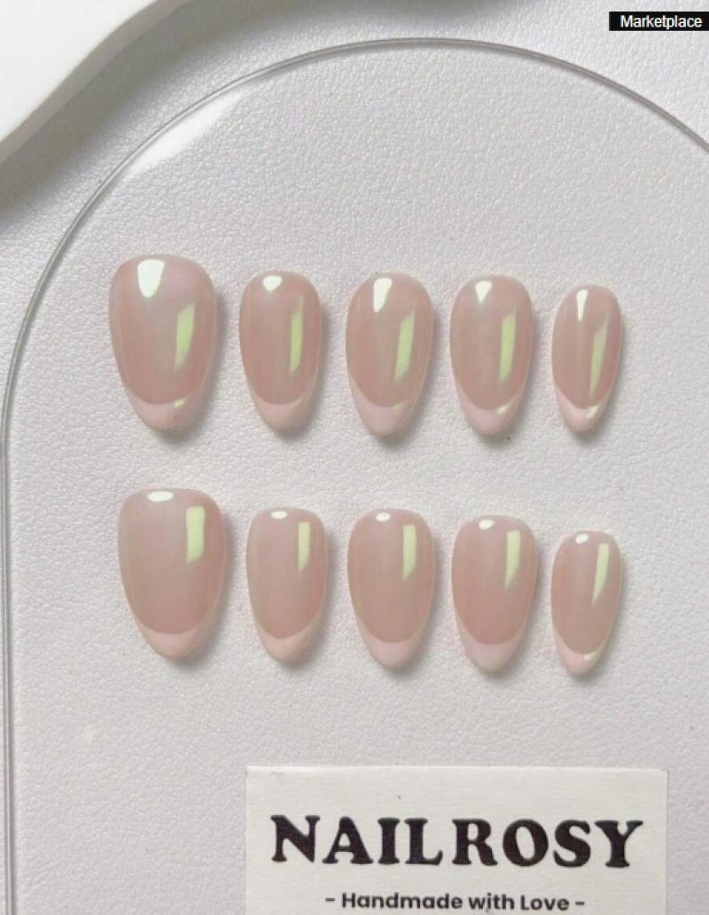 10 قطع من مجموعة الضغط على الأظافر المصنوعة يدويًا، بودرة مرآة فرنسية قصيرة باللون الوردي اللوزي، أنيقة، بسيطة، Y2K، نقود قديمة، طراز ياباني، طراز كوري حديث، تصميم جديد، أنيق، طراز فرنسي، محايد، كلاسيكي إبداعي، لمسة نهائية لامعة