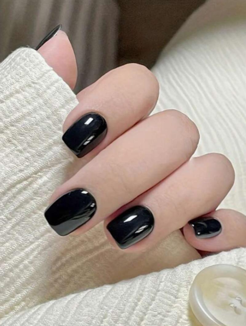 قم بترقية مظهرك مع 24 قطعة قصيرة غير لامعة سوداء مربعة الشكل مسمار الفن مجموعة مناسبة للحفلات أو الرقصات أو ارتداء اليومية اضغط على مستلزمات الأظافر الأظافر