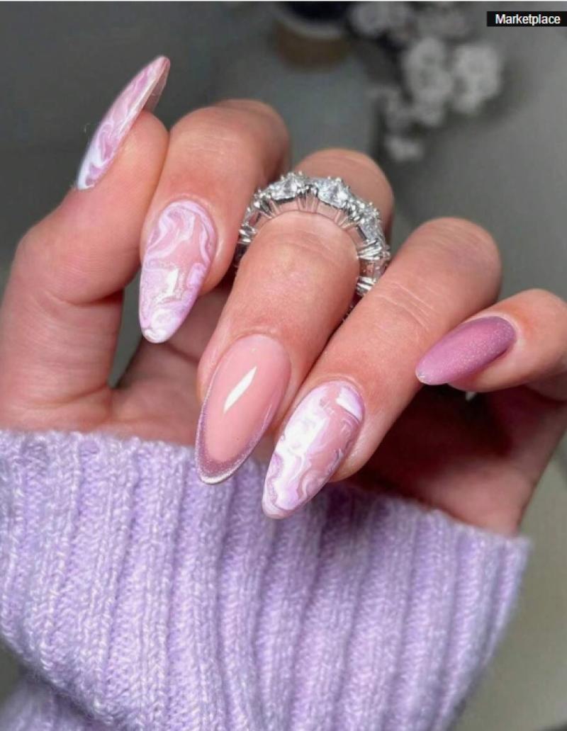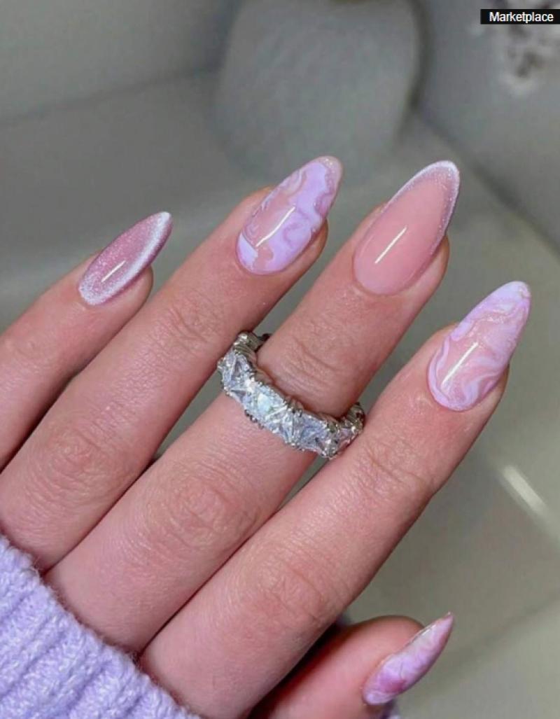 10 قطع من ملصقات الأظافر المصنوعة يدويًا على شكل لوز مع شريط أبيض فيونكة، عين قطة وردية، ياقوت أحمر قزحي أرجواني، ليزر كرزي، ملصقات فنية فاخرة للأظافر من الألماس المتلألئ