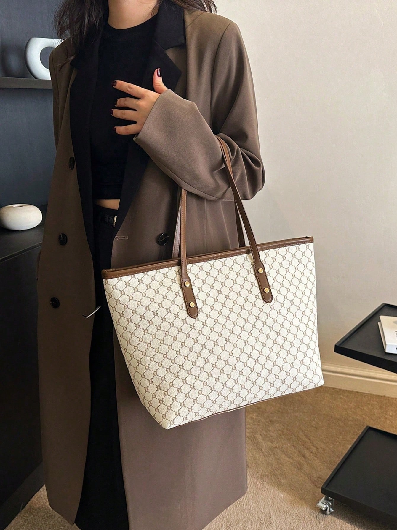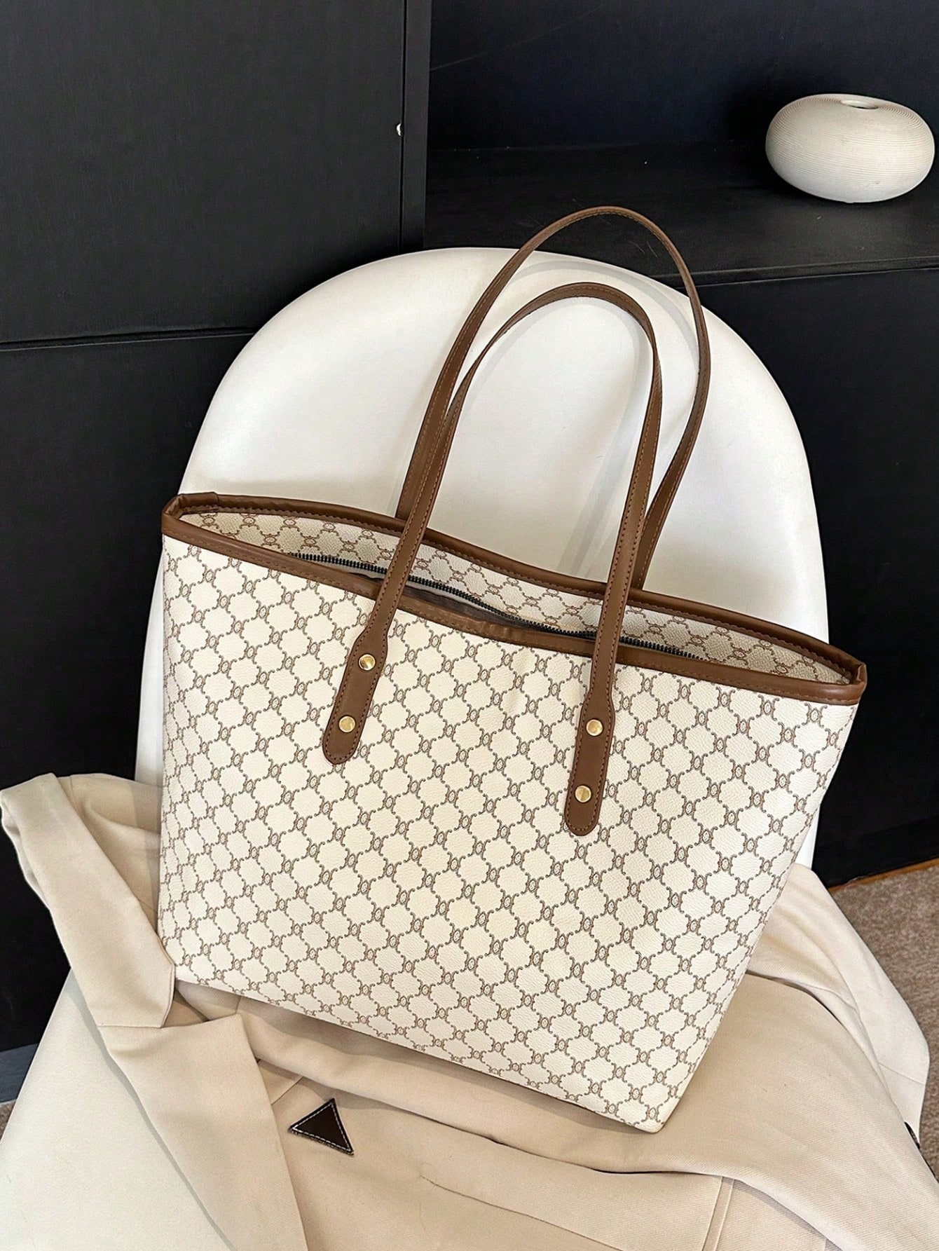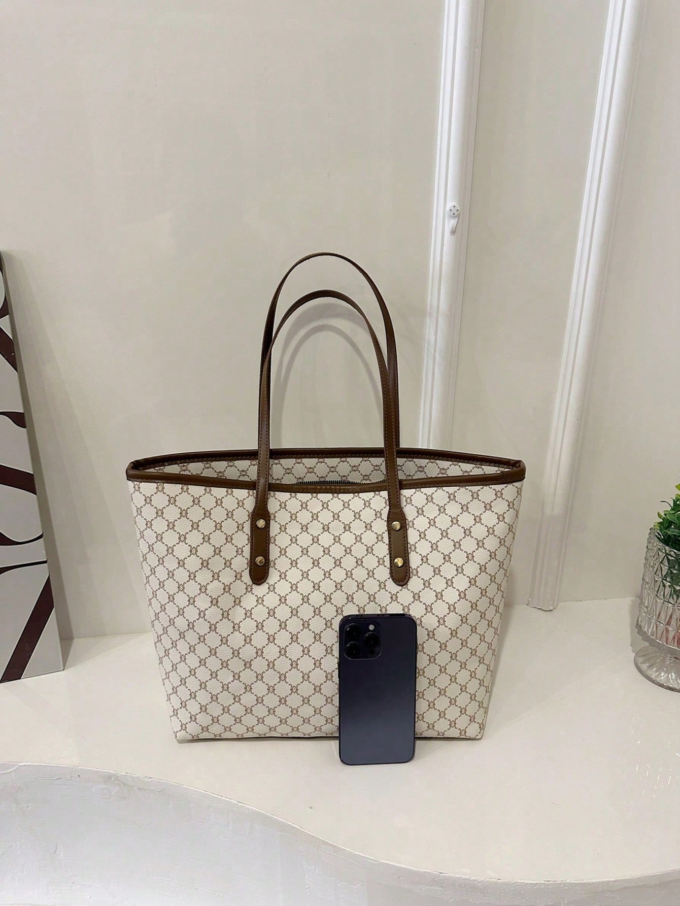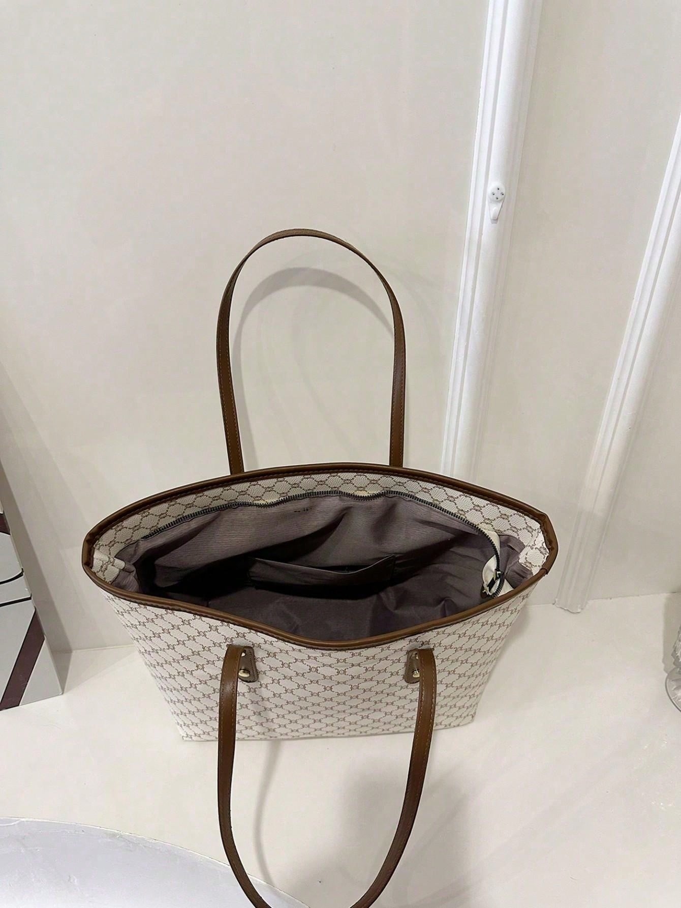 سعة كبيرة بسيطة ومتعددة الاستخدامات المطبوعة حمل حقيبة مع زخرفة برشام للنساء الرجعية زهرة الطباعة حمل حقيبة كبيرة السعة حقيبة الكتف أزياء حقيبة يد يومية للنساء ، جديد في خريف / شتاء Larrge قدرة الكتف حمل حقيبة ، حقائب حمل العصرية للسيدات