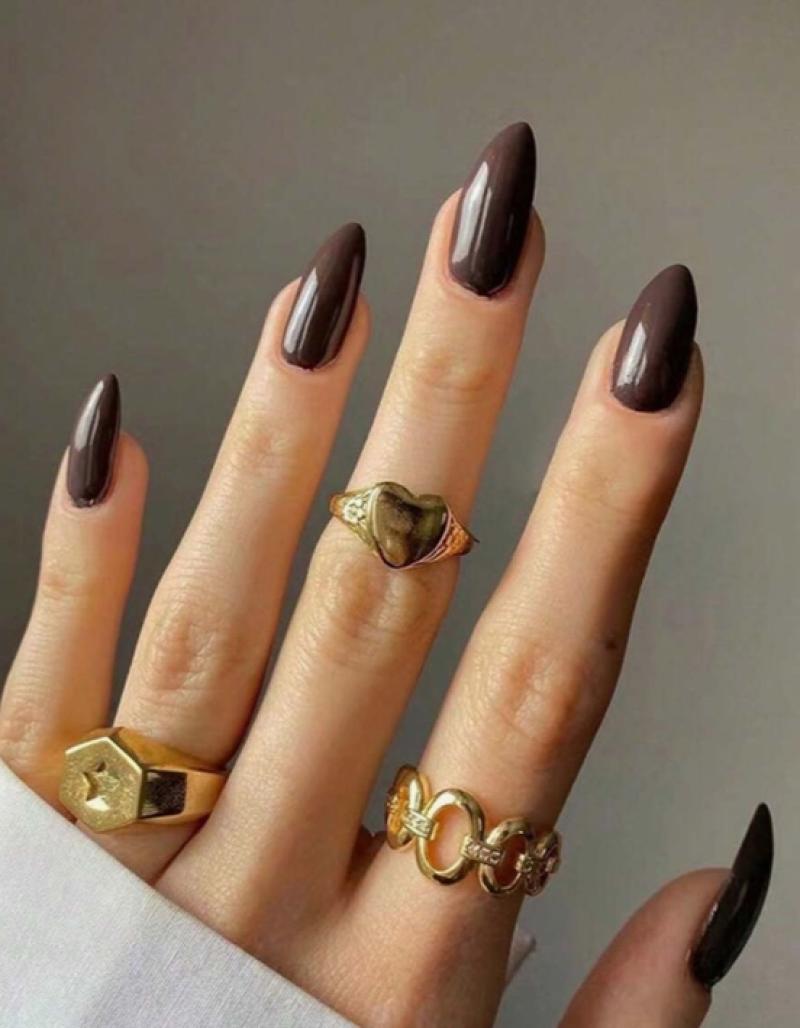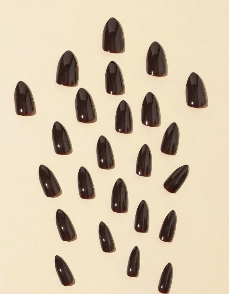 بني غامق مجموعة أظافر كاذبة كاملة الغطاء ، مناسبة لقضاء عطلة أو حفلة أو رقص أو ارتداء يومي اضغط على مستلزمات الأظافر الأظافر