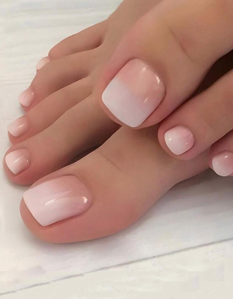 24 قطعة أظافر إصبع القدم المتدرجة باللون الوردي الناعم - ارفع باديكير الخاص بك مع هذه الضاغطات الأنيقة والساحرة ، مثالية لكل مناسبة صيفية