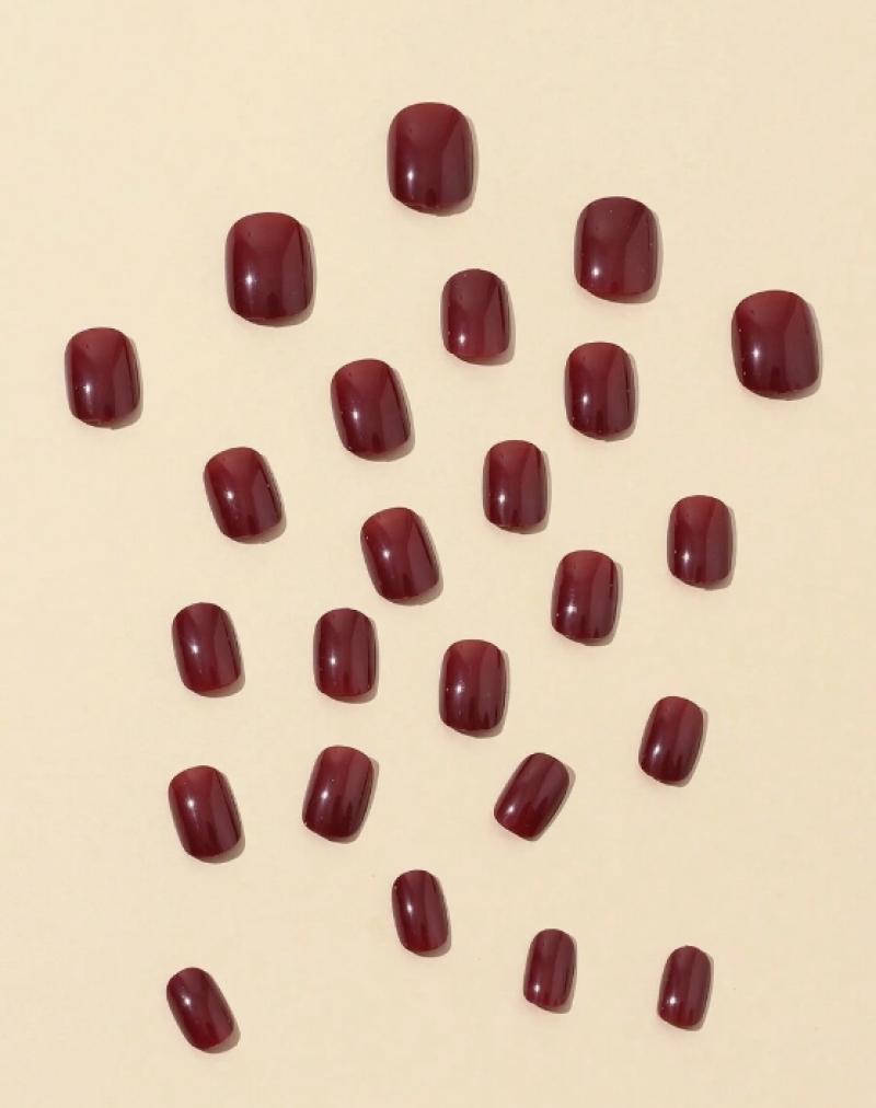 أظافر اصطناعية ارتداء رقعة أظافر حمراء الكرز تأتي مع قطعة من الهلام + ملف الأظافر (لون ملف الأظافر عشوائي) اضغط على مستلزمات الأظافر