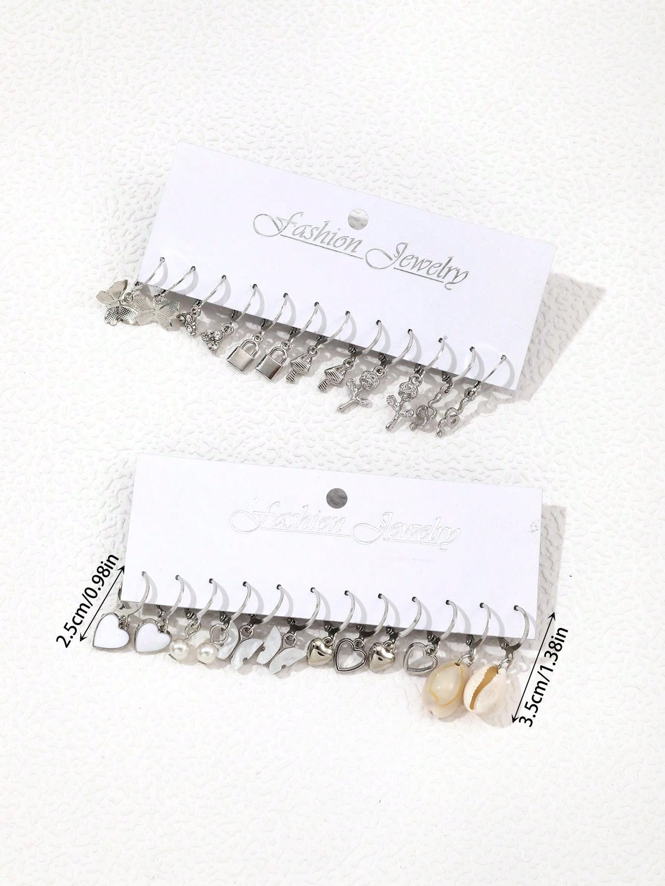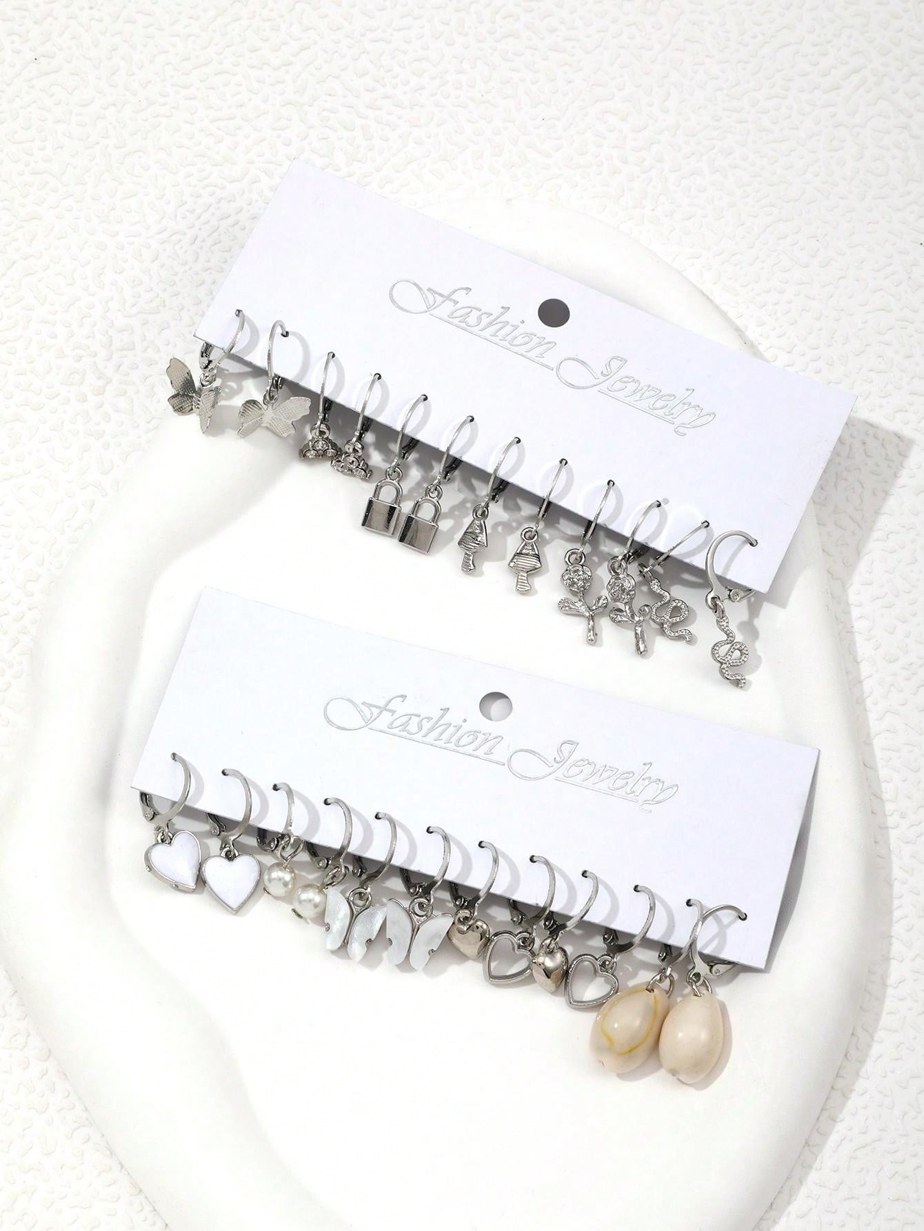 12 زوجا من أقراط الفراشة والقلب المتدلية