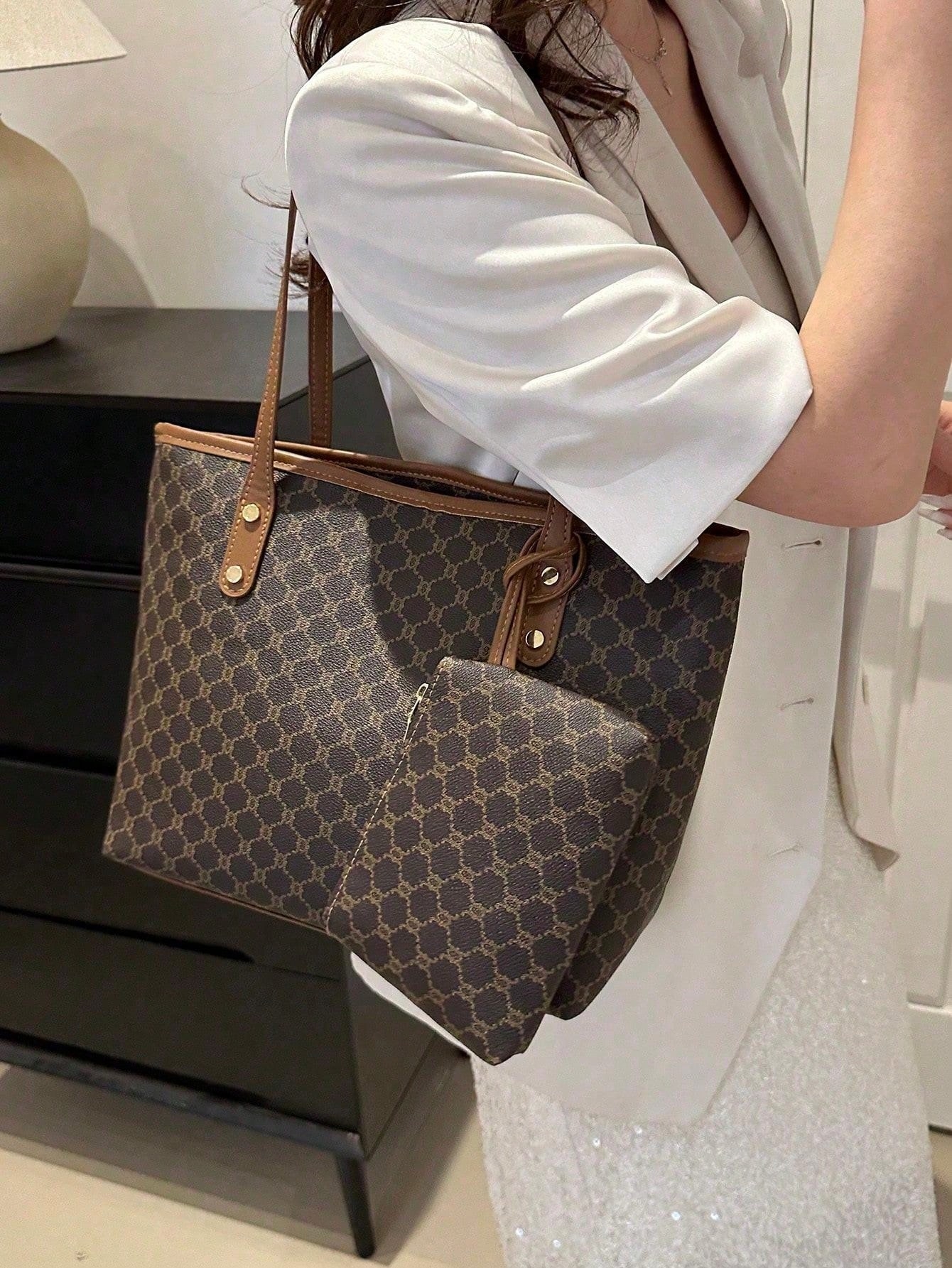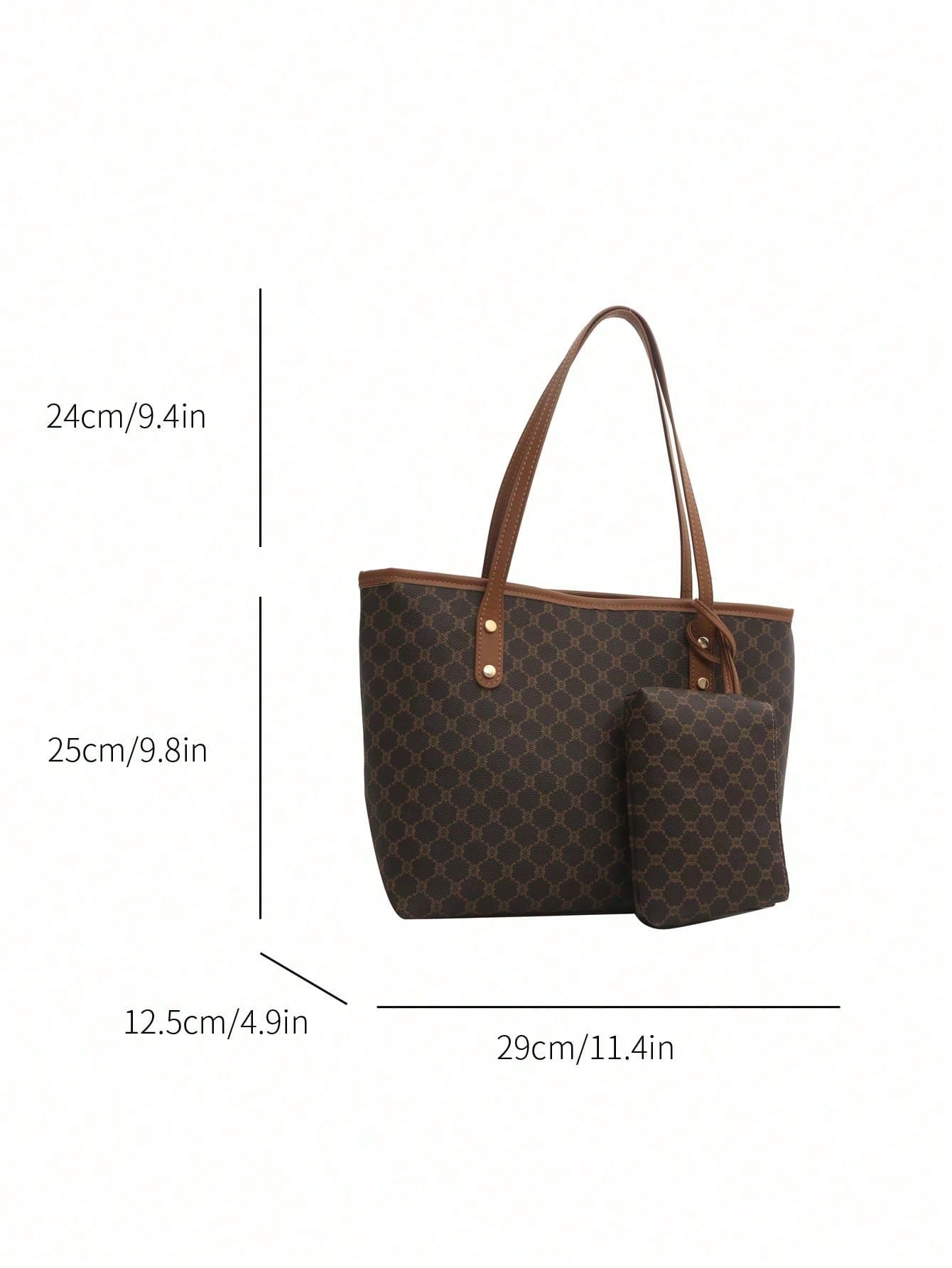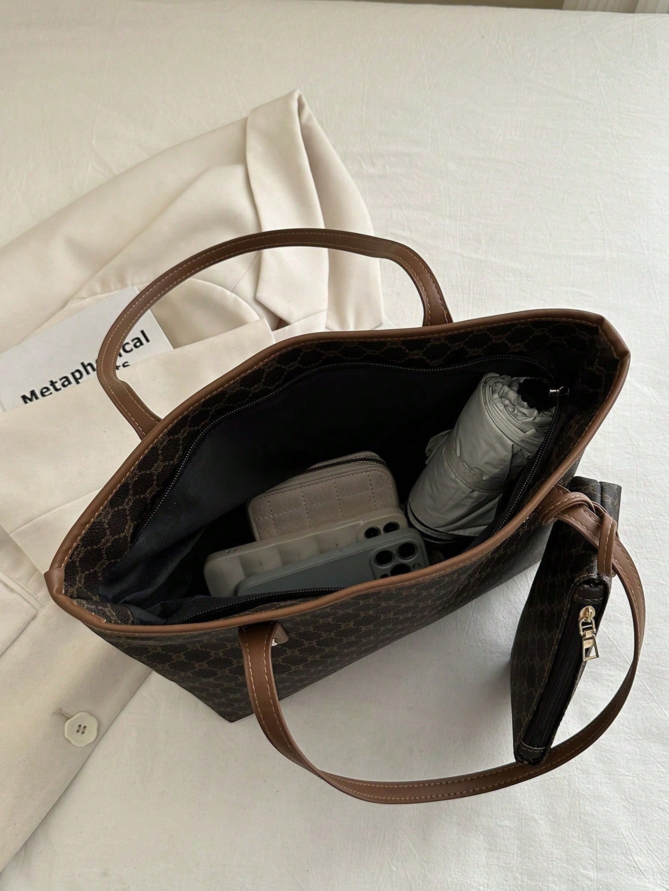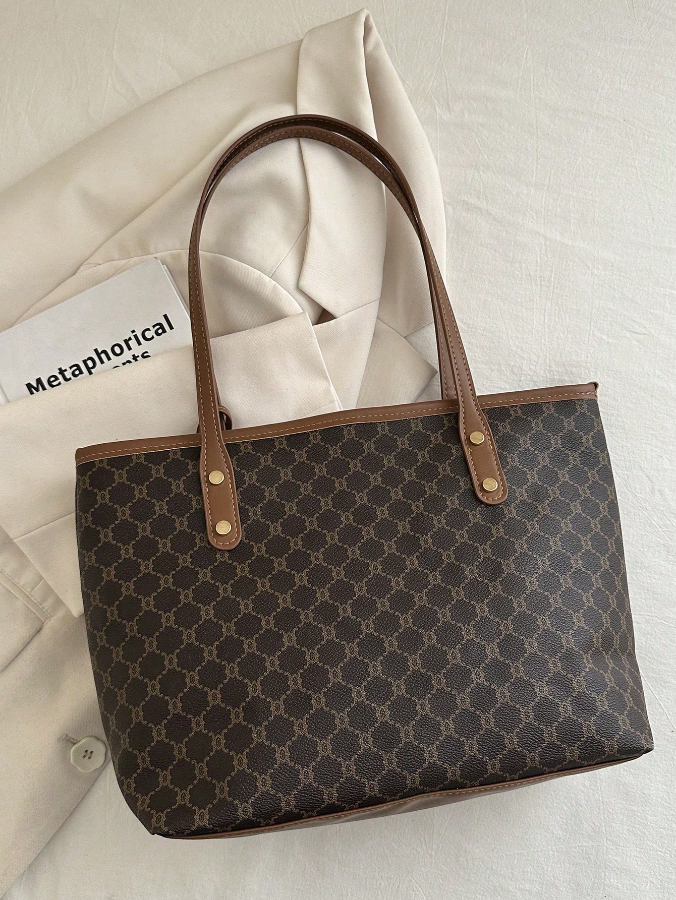 سعة كبيرة بسيطة ومتعددة الاستخدامات المطبوعة حمل حقيبة مع زخرفة برشام للنساء الرجعية زهرة الطباعة حمل حقيبة كبيرة السعة حقيبة الكتف أزياء حقيبة يد يومية للنساء ، جديد في خريف / شتاء Larrge قدرة الكتف حمل حقيبة ، حقائب حمل العصرية للسيدات