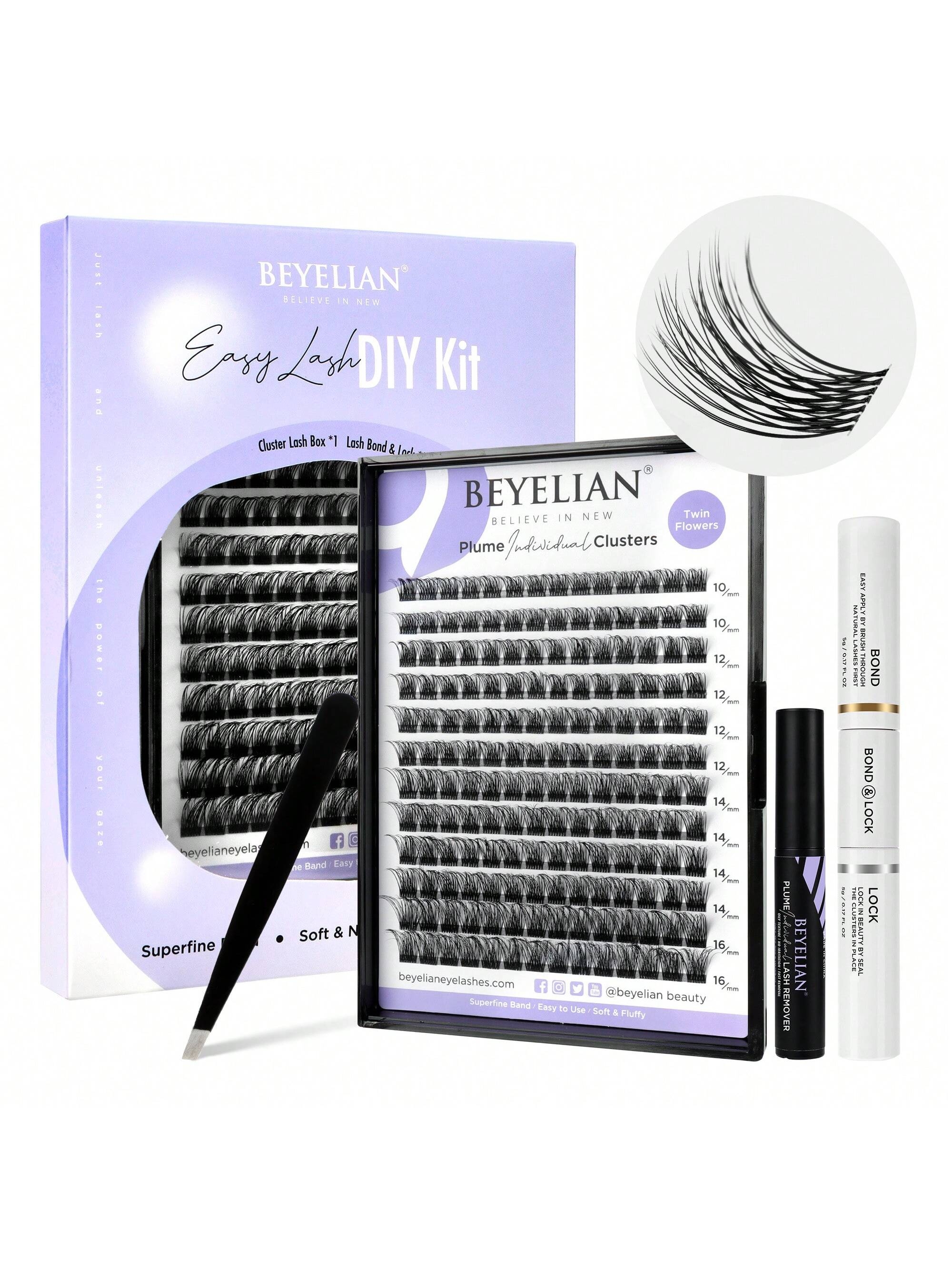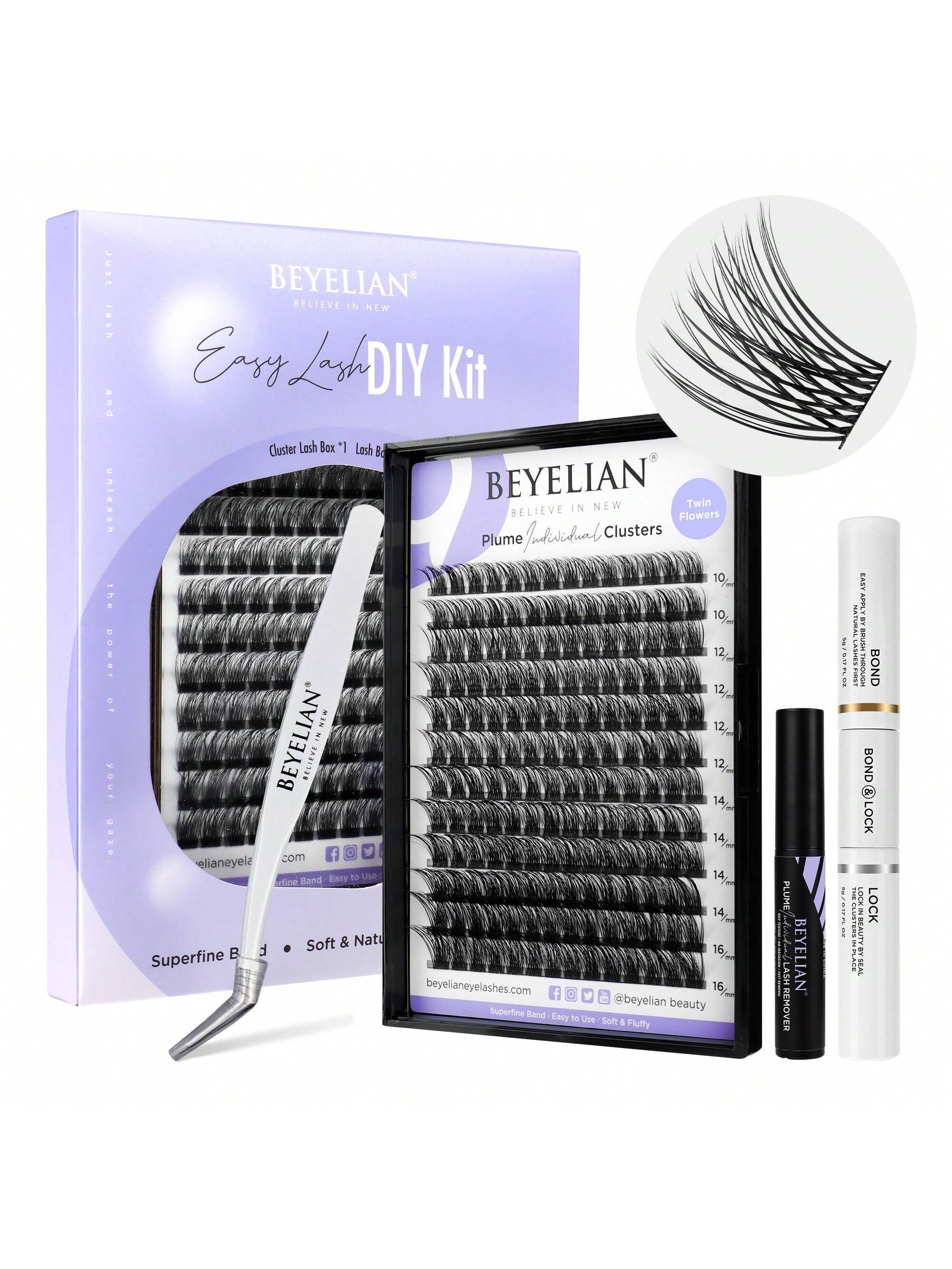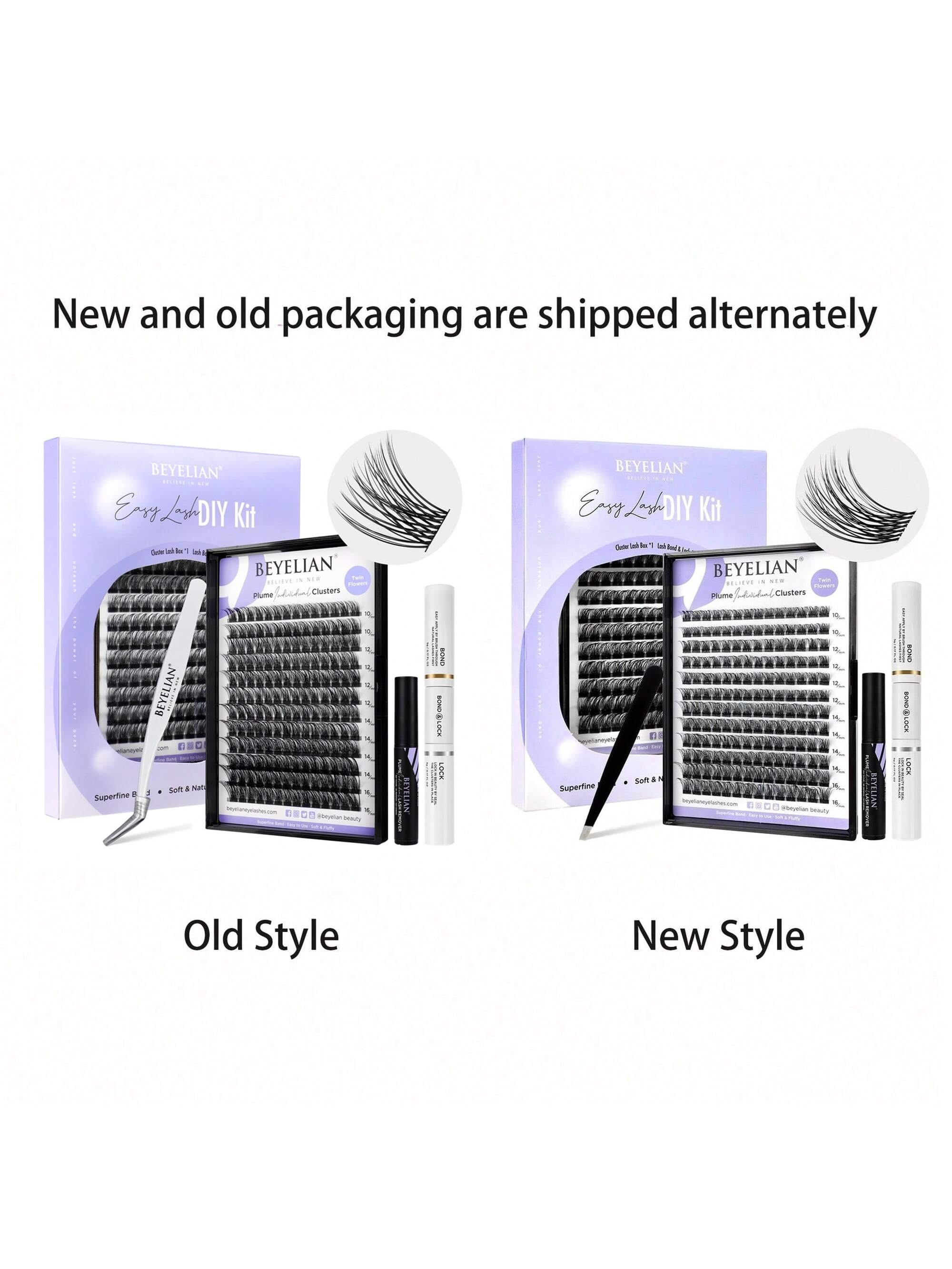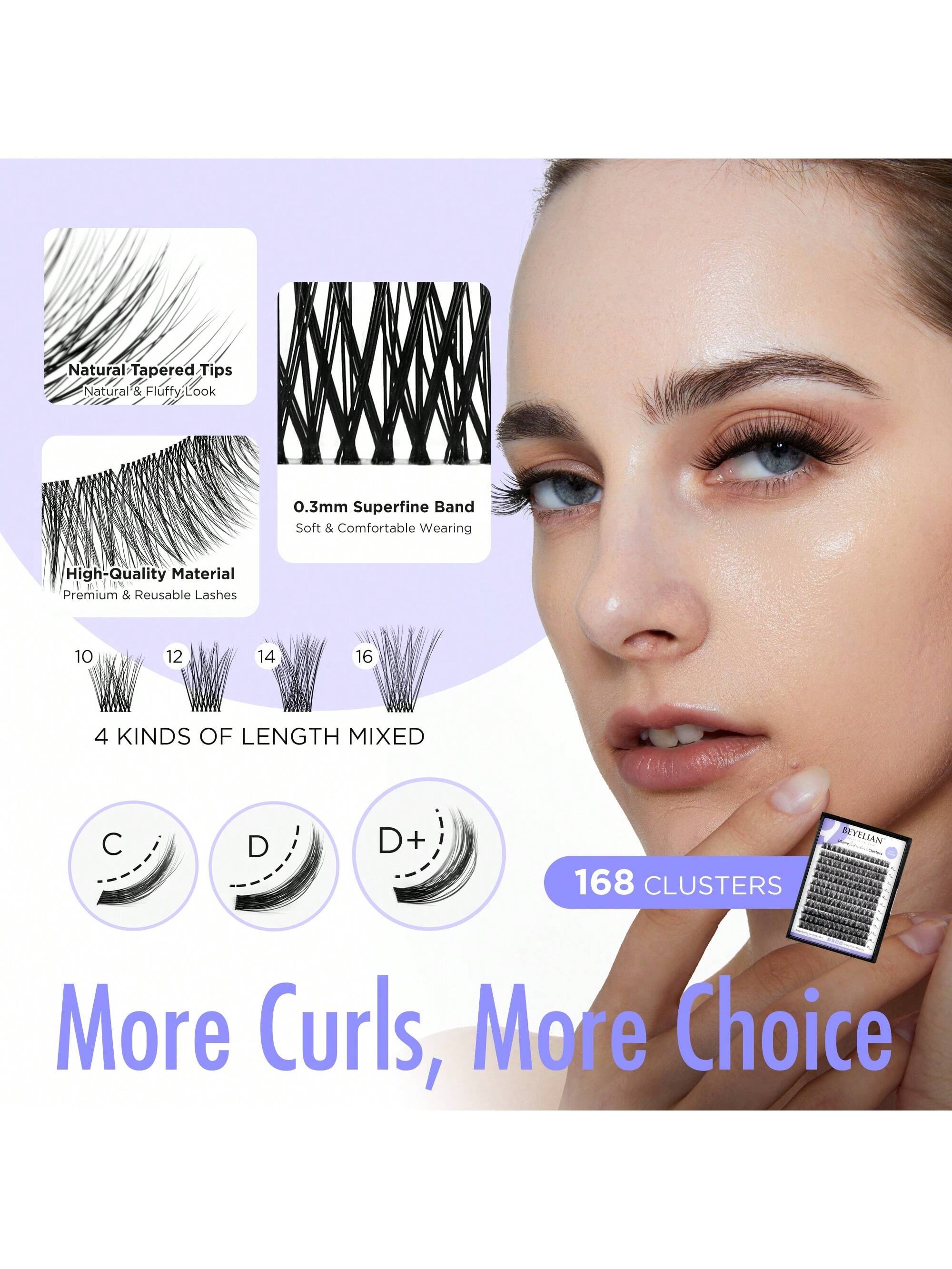 مجموعة تمديد الرموش BEYELIAN DIY مع 168 قطعة D + مجموعة الرموش العنقودية مجموعات الرموش رابطة الرموش ومزيل الرموش الختم وقضيب الرموش للمبتدئين DIY في المنزل (Style3 ، شريط شفاف)