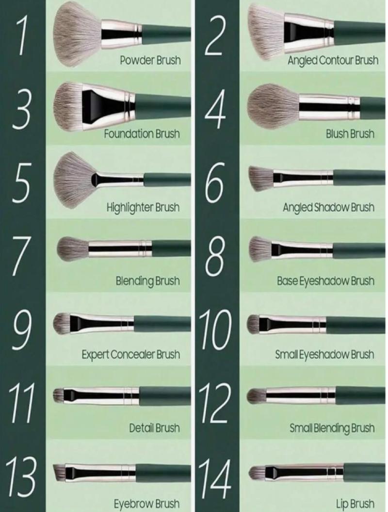 الأخضر 14 قطعة ماكياج فرشاة لينة رقيق أدوات ماكياج مسحوق ماكياج عينيه مؤسسة أحمر الخدود مزيج الجمال فرشاة ماكياج الجمال مناسبة لفناني ماكياج المهنية والمبتدئين ماكياج استخدام السفر يسهل حملها