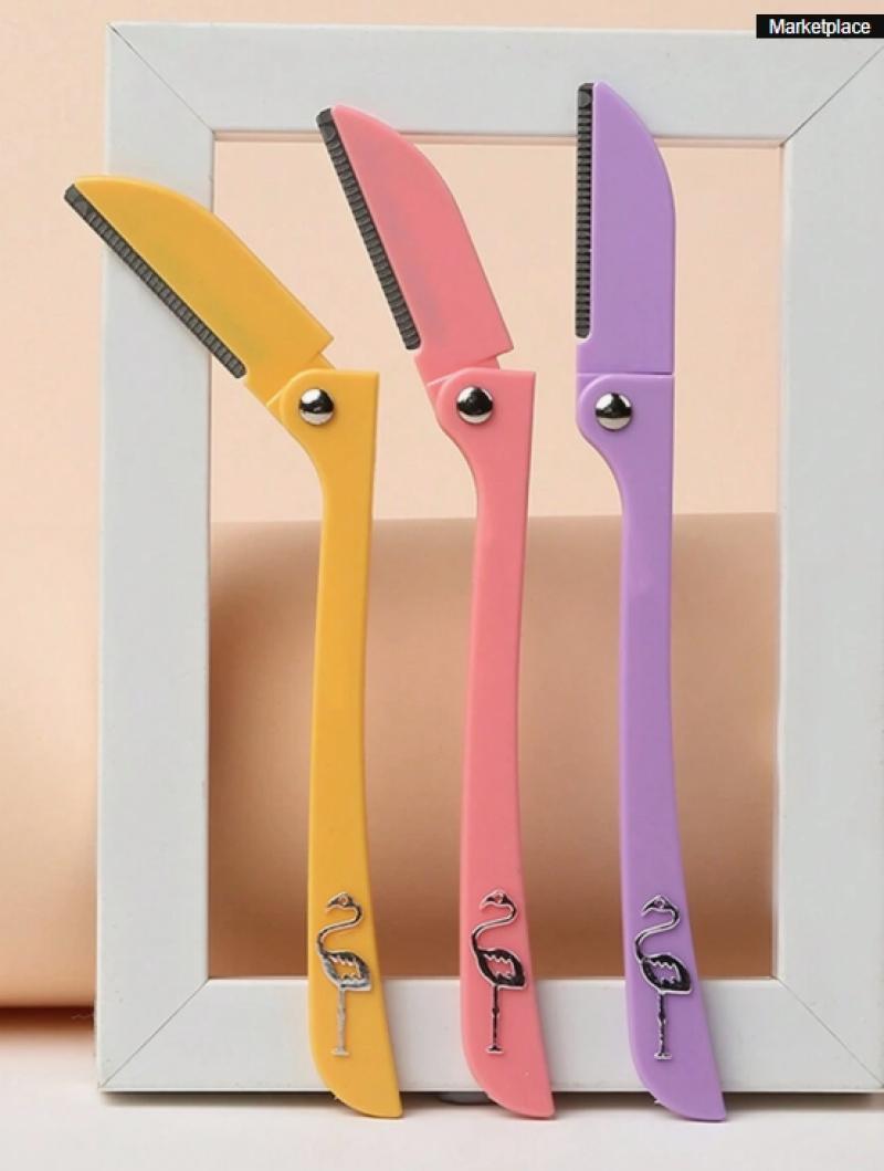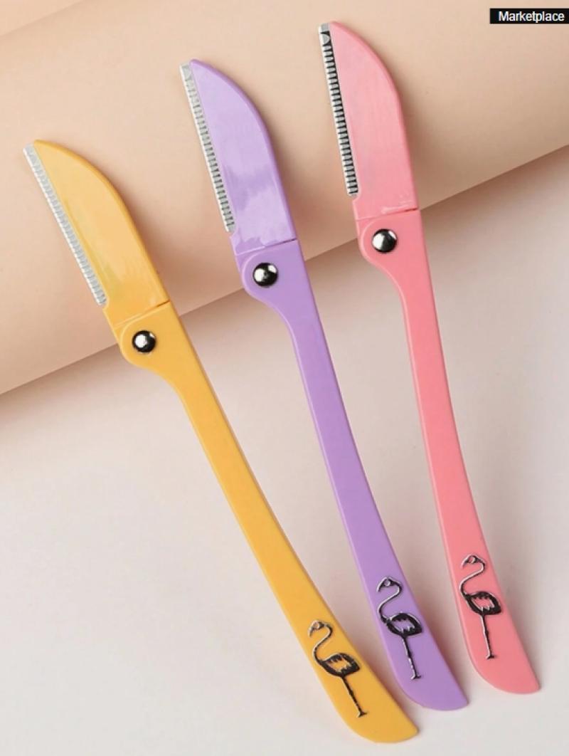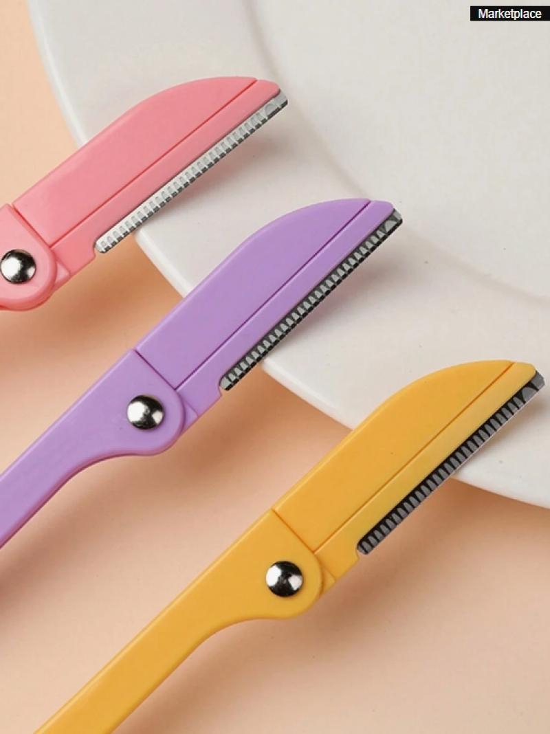 مجموعة مكونة من 3 قطع/مجموعة من أدوات تقشير الجلد، وأداة تشذيب شعر الجسم، ومجموعة شفرات حلاقة الوجه والحواجب، شفرة أمان ذات مقبض طويل مع غطاء دقيق، أدوات تشكيل الحواجب للنساء مناسبة للاستخدام أثناء السفر