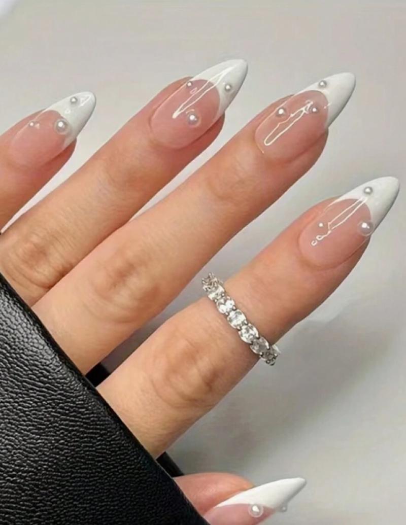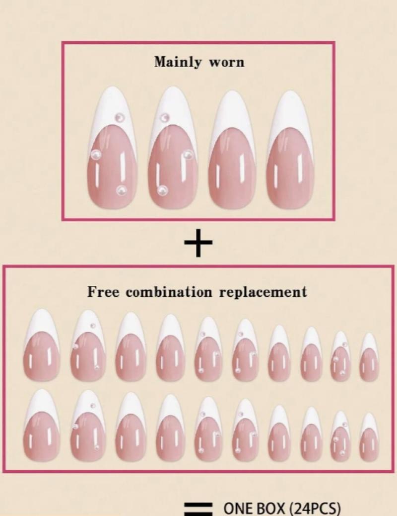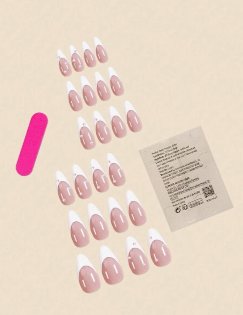 24 قطعة متوسطة الطول بيضاء الحواف الفرنسية ملصقات فن الأظافر ، مجموعة أظافر كاذبة يمكن ارتداؤها ، مع غراء جيلي وملف الأظافر ، لسيناريوهات مختلفة مثل الحفلات وحفلات الرقص ، مناسبة للنساء والفتيات اضغط على مستلزمات الأظافر