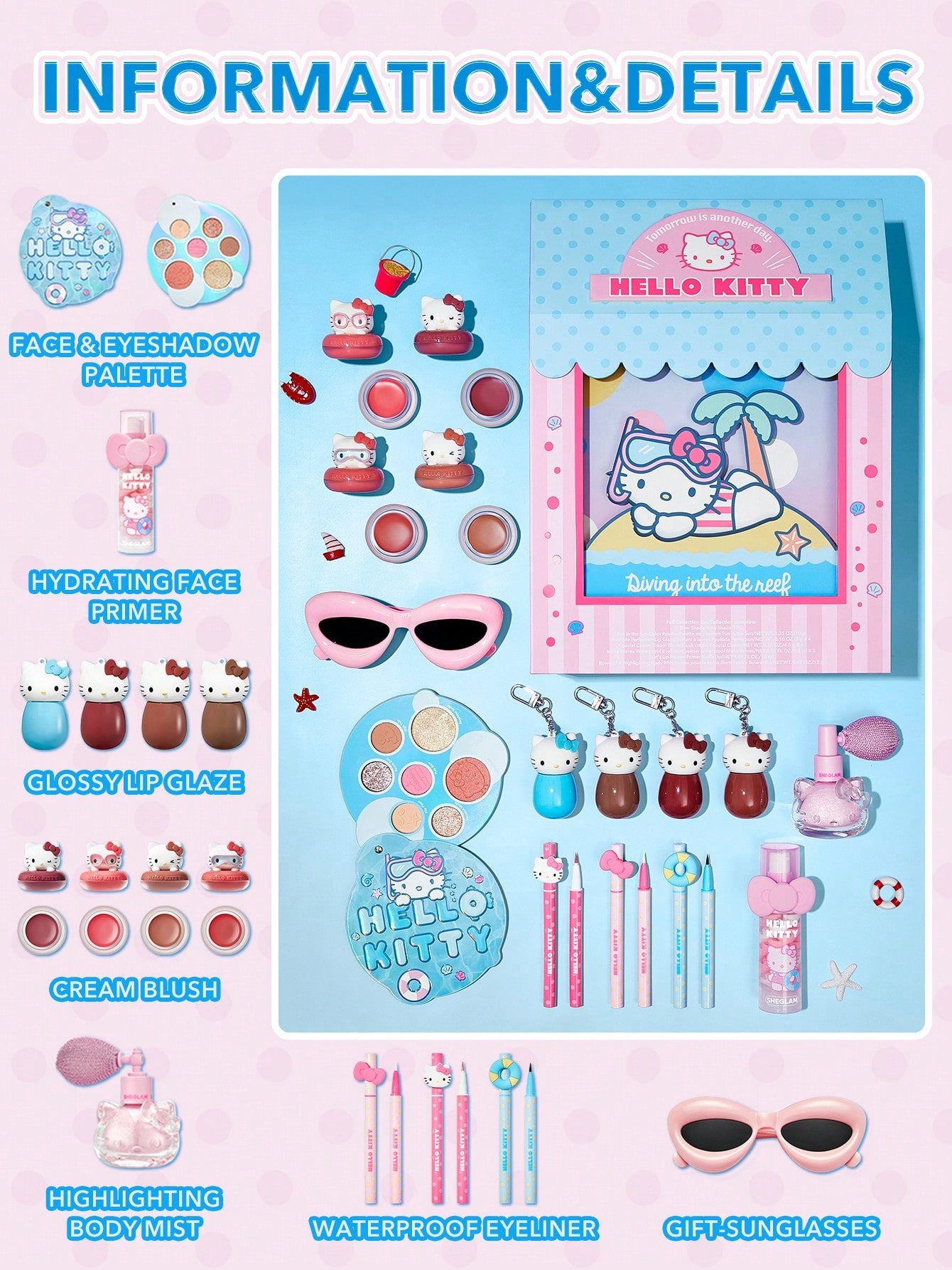 اجعل كل يوم يشعر وكأنه إجازة مع مجموعة Kitty x SHEGLAM الجديدة! تتميز هذه المجموعة بلوحة ألوان مكونة من سبعة ألوان ، ومجموعة ملمع شفاه من أربع قطع ، وأربعة أحمر خدود كريمي ، وكحل ملون مقاوم للماء ، وبرايمر ندي ، ورذاذ لؤلؤي يبرز الجسم ، تضفي هذه المجموعة أجواء شاطئية كبيرة على مظهرك. استخدمي المجموعة بأكملها للحصول على وجه كامل لكيتي أو كمكمل لبريق مظهرك لإضفاء لمسة استوائية على أكواي!