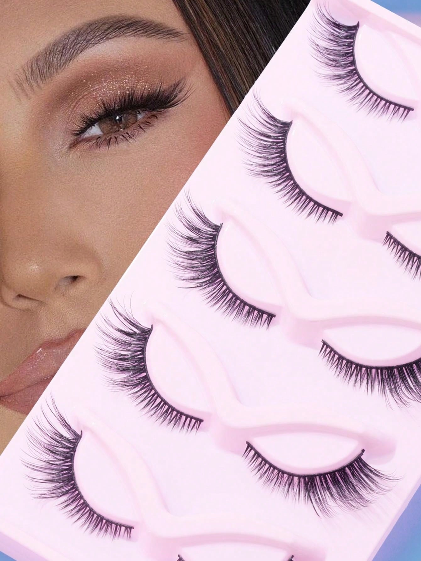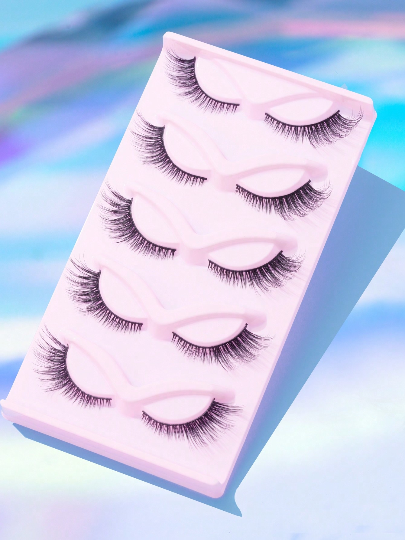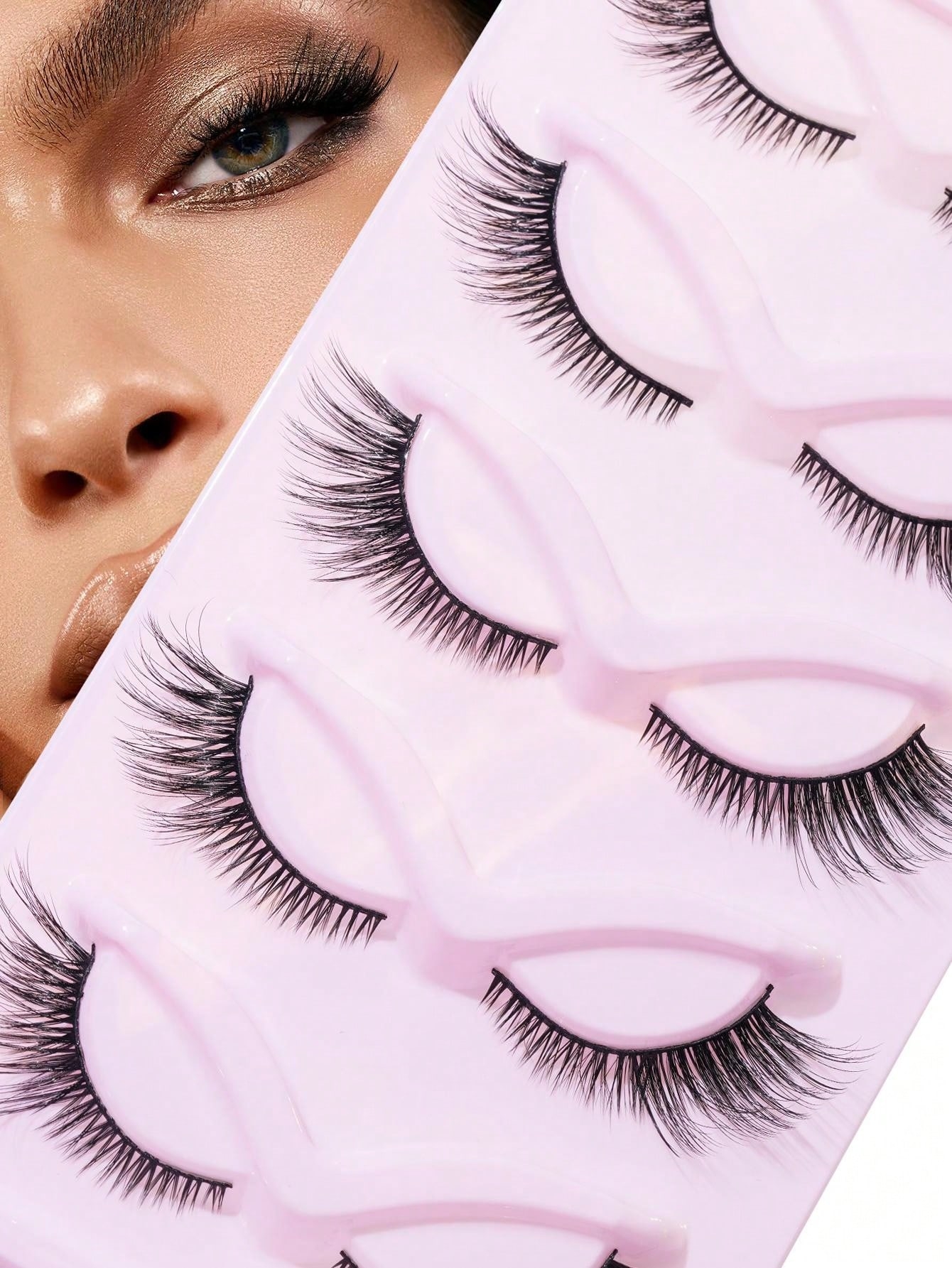 5 أزواج من رموش عين الثعلب النحيلة والمجعد الطويل وذيل العين والرموش الصناعية الطويلة 16 ملم">